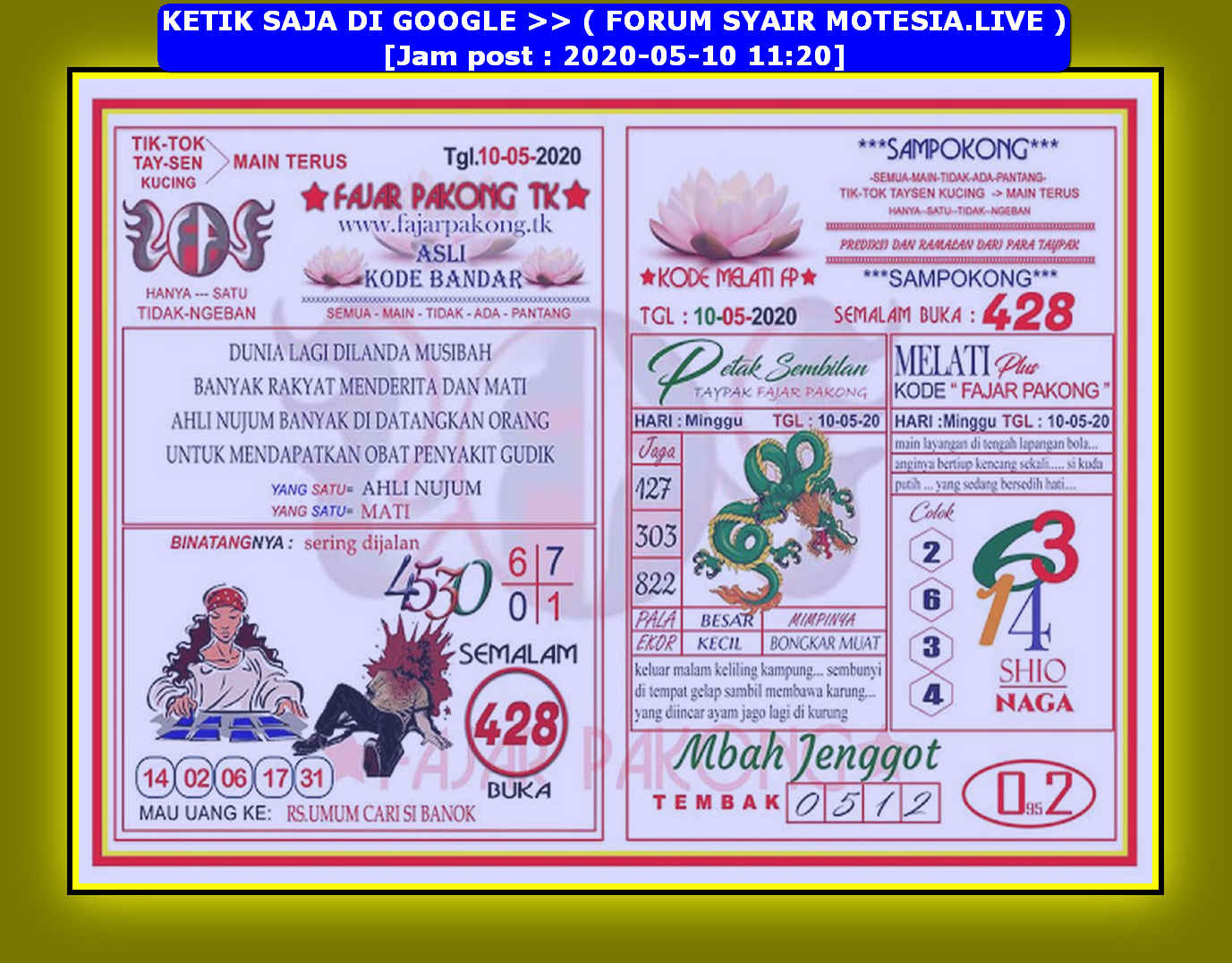 Kode Syair Hk Pools Hari Ini Minggu 10 Mei 2020 Forum Syair Hk Syair Sgp Syair Sidney Syair Togel