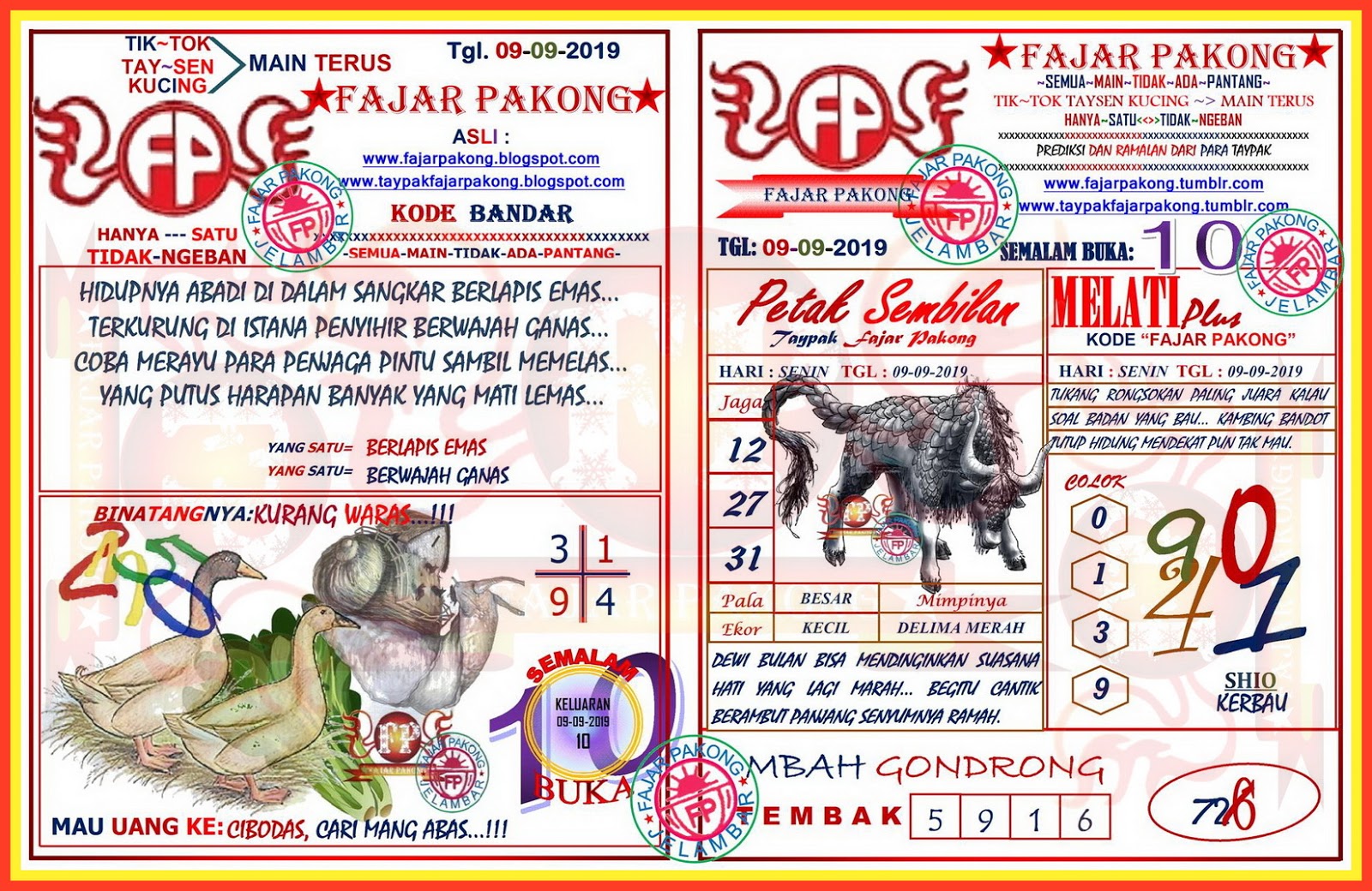 Tay Pak Fajar Pakong Lama Hari Ini Kode 06 09 2019
