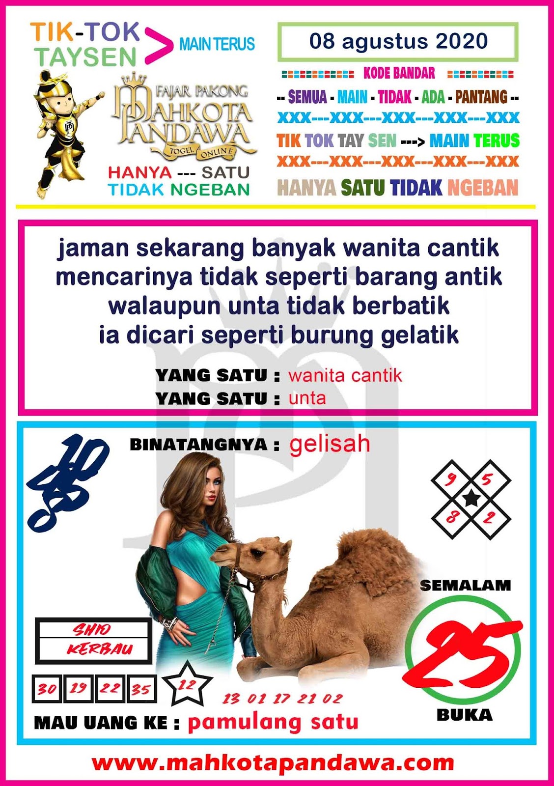 Syairan mahkota pandawa hk selasa. Mohon infonya untuk syair fajar pakong mahkota pandawa itu untuk togel pasaran apa dan bandar apa yg ada togel fajar pakongnya. Syair mahkota pandawa hk kamis 10 desember 2020.